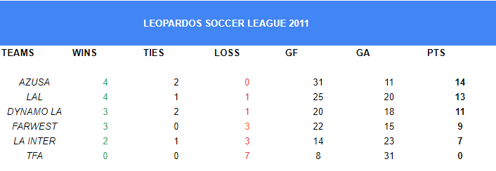 LEOPARDOS SUMMER LEAGUE 2011 BRACKET